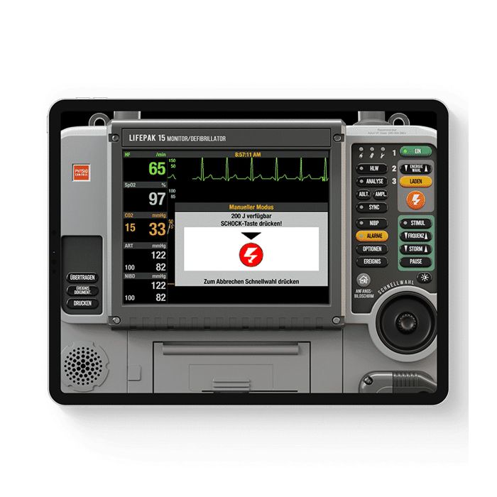Die qube15 Software verfügt über eine voll funktionsfähige EKG-Oberfläche des LIFEPAK 15 von Stryker. Sie bietet alle notwendigen Funktionen um medizinische Notfälle zu simulieren. Die Software beinhaltet eine vollintegrierte AED- sowie Pacer-Funktion und ist in der Lage, das angezeigte 12 Kanal-EKG zu drucken. Sie ist perfekt in Controller, Assessment und Cloud integriert und liefert Ihnen damit die volle Leistungsfähigkeit die du für den Erfolg deines Trainings benötigst.